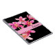 Notebook mit schwarzer Hintergrundfarbe mit einem schönen rosa orchid Blume Grafik-Druck und einem Namensbeispiel. Passen Sie dieses Element an und ändern Sie den Namen in Ihren Namen.