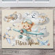 Die Einführung unseres Individuelle Name Pilot Teddy Bären Türmatte! Mit einem kleinen Bären, der sein Flugzeug fliegt, hübschen Wolken, Sternen und anderen Flugzeugen am Himmel, bringt diese Türmatte Abenteuer und Verspieltheit in jeden Raum!
