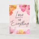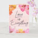 Liebe ist alles. Stilvolle Valentinstag-Karte. Die Aquarellfarben sind in Rosa, lila, Gelb und Orange gehalten. Im Außentext steht "Liebe ist alles", ergänzt durch Valentins Gruß im Inneren. Kann weiter angepasst werden, indem Sie Ihren Namen und den Namen Ihres Liebsten in der Karte hinzufügen. Eine wunderschöne Valentinenkarte für Paare. Verlass es nicht zu spät! Holen Sie sich jetzt und erfreuen Sie sich die besondere Person in Ihrem Leben diesen Valentinstag!