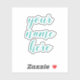 Custom Modern Chic Name Text Script Wasser Flasche Klarkleber mit Ihrem personalisierten Text in einem niedlichen und eleganten kalligraphischen Schriftart. Der Aufkleber ist in einem helltürkisfarbenen Blau gehalten, der Stil der Schriftart und die Farben sind vollständig anpassbar.