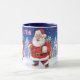 individuelle Name Weihnachtskaffee Tasse, Jolly Santas. 2 Töne dunkelblau.