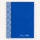 Elegantes blaues Notizbuch mit einem weißen Vektor Blumenmuster mit einem anpassbaren Namen und Jahr auf dem Cover. Ideal für Journalisten, Schulen, Planungen oder als nachdenkliches personalisiertes Geschenk.