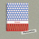 Baseballs erzeugen ein helles Polka-Punktmuster auf blauem Hintergrund auf der Vorderseite und einen roten Hintergrund auf der Rückseite dieses Notebooks. Auf der Vorderseite werden Baseballschläger auch verwendet, um ein weiteres Muster zu erzeugen. Es gibt ein weißes Band, mit dem Sie einen Namen oder einen anderen Text personalisieren können.