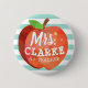 Ein Spaß und sorgloses ein seafoam Grün striped den Knopf, der eine stilisierte Apfelillustration kennzeichnet. Innerhalb dieses Apfels ist der Name Ihres Lieblingslehrers in einem playful Art-Schriftart.
