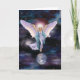 Weiblicher Engel, der in der Hand von der Galaxie und über Erde im Raum mit dem Licht der Wahrheit auftaucht. Verwendet durch Doreen Vorzug für Engels-Kartensatzabdeckung. Durch Daniel B. Holeman.