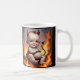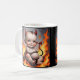 Dieser bezaubernde Babytebel sitzt inmitten von Flammen und strahlt eine Aura des Unheils und des Charmes aus. Mit rosigen Wangen und einem spielerischen Lächeln scheint dieser kleine die Formulierung "devilishly niedlich " zu verkörpern. Der Kontrast zwischen der unschuldigen Erscheinung des Babys und der feurigen Umgebung schafft eine humorvolle und skurrile Szene.
