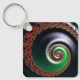 Diese Arbeit zeichnet sich durch ein komplexes, wirbelndes Fraktal mit einer Spiralstruktur aus, die sich unendlich nach innen ausdehnt. Die Primärfarben sind lebhaft rot und üppig grün, kontrastieren mit einem tiefen, dunklen Hintergrund. Entlang der Spirale wiederholen sich komplexe, kleinere Fraktal-Formen, die ein Gefühl von Tiefe und Bewegung schaffen. Die roten Fraktal-Elemente ähneln Bio Formen, fast wie blühende Blume oder geschwungene Blätter. Die grünen Töne wechseln allmählich zu silbrigen Weißen naher in die Mitte, wodurch ein leuchtender Effekt entsteht. Insgesamt ruft das Bild ein Gefühl unendlicher Komplexität und dynamischer Energie hervor.