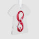 Infinity symbole of continuous stream of red pouring into glass glass glass on white background.