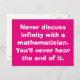Sprich nie mit einem Mathematiker über Unendlichkeit. Du wirst nie das Ende hören.