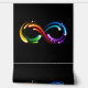 Symbol of infinity is artistically painted with fast moving, bright, luminous, rainbow colored comets with long flexible tails on black background. Rainbow infinity.