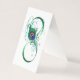 The symbol of infinity with a bright, green, artistic peacock feather on a white background. Tattoo style.