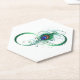 The symbol of infinity with a bright, green, artistic peacock feather on a white background. Tattoo style.