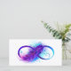 Infinity symbol with a beautiful feather painted in purple and blue bright colors on white background.