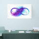 Infinity symbol with a beautiful feather painted in purple and blue bright colors on white background.