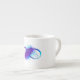 Infinity symbol with a beautiful feather painted in purple and blue bright colors on white background.