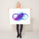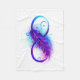 Infinity symbol with a beautiful feather painted in purple and blue bright colors on white background.