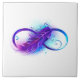 Infinity symbol with a beautiful feather painted in purple and blue bright colors on white background.
