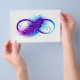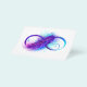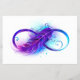 Infinity symbol with a beautiful feather painted in purple and blue bright colors on white background.