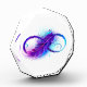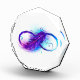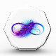 Infinity symbol with a beautiful feather painted in purple and blue bright colors on white background.