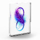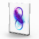 Infinity symbol with a beautiful feather painted in purple and blue bright colors on white background.