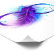 Infinity symbol with a beautiful feather painted in purple and blue bright colors on white background.