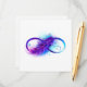 Infinity symbol with a beautiful feather painted in purple and blue bright colors on white background.