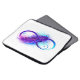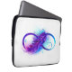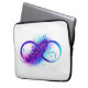 Infinity symbol with a beautiful feather painted in purple and blue bright colors on white background.