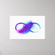 Infinity symbol with a beautiful feather painted in purple and blue bright colors on white background.