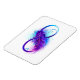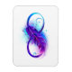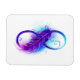 Infinity symbol with a beautiful feather painted in purple and blue bright colors on white background.