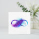 Infinity symbol with a beautiful feather painted in purple and blue bright colors on white background.
