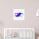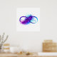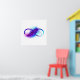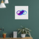Infinity symbol with a beautiful feather painted in purple and blue bright colors on white background.