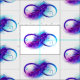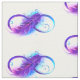 Infinity symbol with a beautiful feather painted in purple and blue bright colors on white background.