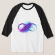 Infinity symbol with a beautiful feather painted in purple and blue bright colors on white background.