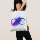 Infinity symbol with a beautiful feather painted in purple and blue bright colors on white background.