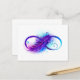 Infinity symbol with a beautiful feather painted in purple and blue bright colors on white background.