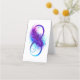 Infinity symbol with a beautiful feather painted in purple and blue bright colors on white background.