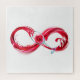 Infinity symbol of continuous stream of red wine puring into glass wine glass on white background.