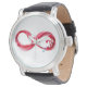Infinity symbol of continuous stream of red wine puring into glass wine glass on white background.