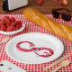 Infinity symbol of continuous stream of red wine puring into glass wine glass on white background.