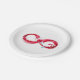 Infinity symbol of continuous stream of red wine puring into glass wine glass on white background.