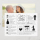 Version in Großbritannien! Diese Infografik zeigt Save the Date lustige Fakten über das verlobte Ehepaar, damit sie ihre Geschichte mit Hochzeitsgästen teilen können. Der Rücken hat ein komplettes Foto der bald Braut und Bräutigam.