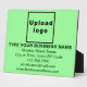 Plaque de plaque de table rectangle au format paysage avec chevalet que vous pouvez customiser pour mettre votre nom d'entreprise. Customisez-le et utilisez-le comme matériel marketing pour faire de la publicité à votre entreprise ou pour promouvoir votre marque auprès de vos clients ou clients. Les dessins sont des textes vert foncé sur un arrière - plan vert clair et sur le format de paysage rectangle forme. Pour customiser cette plaque, téléchargez votre logo d'entreprise, tapez votre nom d'entreprise ou d'entreprise, votre adresse, votre numéro de téléphone, votre courriel et votre site Web ou votre page de médias sociaux. Veuillez vérifier l'apparence après avoir téléchargé le logo et tapé des textes. Si l'apparence vous plaît, vous pouvez passer votre commande maintenant. Si vous avez besoin de redimensionner et déplacer le logo et les textes pour s'insérer sur cette plaque ou sur d'autres tailles que vous choisirez, veuillez modifier l'outil de conception. Vous pouvez également effectuer d'autres modifications en fonction de vos préférences dans l'outil de conception, comme changer la couleur arrière - plan, la couleur de police et le style de police. Plaque que que vous pouvez afficher sur votre bureau de réception pour sensibiliser la marque.