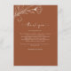 Cette belle carte de remerciements en terre cuite est la meilleure façon de partager votre gratitude avec vos invités. Le design minimaliste et époustouflant de la carte ajoute de l'élégance à votre événement spécial. La carte est parfaite pour les mariages, les fêtes ou toute autre occasion où vous voulez partager vos pensées avec vos invités. La carte est imprimée sur du papier de haute qualité et est fournie avec une enveloppe correspondante, ce qui facilite l'envoi aux clients. Cette carte de boîtier de détails sera certainement un succès avec vos invités.