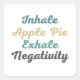 Apportez une tranche de bonheur dans votre vie avec nos autocollants "Inhale Apple Pie Exhale Negativité". Ces autocollants sont dotés d'une tarte aux pommes fraîchement cuite et d'une bouche imaginaire qui vous rappelle de prendre une profonde haleine et de profiter des petits plaisirs de la vie. Parfaits pour votre ordinateur portable, bouteille d'eau ou carnet, ces autocollants vous éclaireront la journée et vous aideront à garder une attitude positive. Répandez de bonnes vibes et montrez votre amour pour la tarte aux pommes avec ces stickers amusants et uniques.