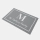 Schalten Sie Ihren Zuhause mit dieser eleganten, maßgeschneiderten monogramm-Doormat in neutralen, mittelgrauen und weißen Farbtönen auf. Hinweis: Die Farben können geändert werden. Personalisieren Sie mit dem Nachnamen Ihrer Familie im Skript und einem Serifenstil Monogramm Initial. Das Design umfasst einen gerahmten Rahmen.