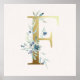 Mit Clear Image können Sie Ihren Hintergrund ändern, wenn Sie es wünschen. Ich habe einen eckigen Hintergrund für die Anzeige hochgeladen. Ein elegantes goldenes Alphabet mit traditioneller Schrift, die mit anmutigen aquamarinen und glänzenden blauen Aquarellfarben-Blume und Blätter geschmückt ist.