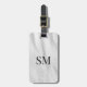 Eleganter, klassischer Minimal White Leather Monogramm Initials Gepäckstück Tag. Enthält Imitate Lederhintergrund.