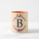 Ursprüngliches graues Monogramm mit Kranzrahmen in Blume auf BiK-Hintergrund. Elegante mit Monogramm Kaffee-Tasse, um sie zu bekommen oder als Geschenk zu geben.