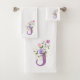 Das Design enthält Monogram plus Blume in einem Blumendesign. Initial ist der Buchstabe J. Persönliches Handtuch Set.