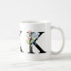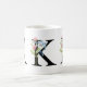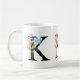 Eine personalisierte Kaffee-Tasse mit dem Buchstaben "K" Monogramm, mit dekorativen Aquarellbildern mit Blumen- und Blattbildern. Einfach mit Ihrem Namen anpassen oder ein einzigartiges Geschenk für Ihre Lieben schaffen.